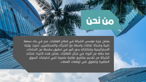 نحن هنا لمساعدتك في تحقيق أحلامك العقارية. لا تتردد في التواصل معنا للحصول على استشارات مجانية أو لمزيد من المعلومات حول مشاريعنا وخدماتنا.